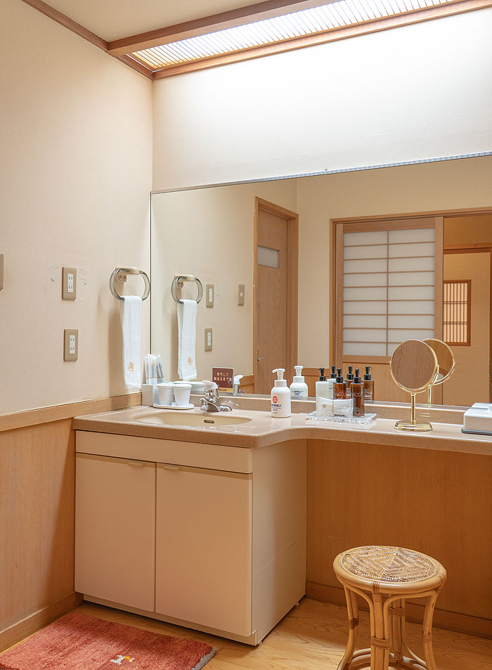 その日の気分や用途に合わせて、お好きなほうをお申し付けください。テーブルに化粧品を広げて落ち着いて使え、身支度の時間が、旅の楽しみのひとつになりますように。