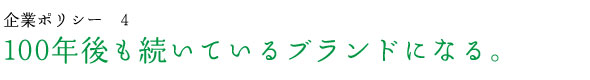 100年後もお客様との信頼が続くブランドとなるためには、値引きではなく、品質向上を常に目指します。