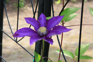 | 二宮邸のバラ園には、バラ以外にもさまざまな花が咲いています。 紫色のてっせんが美しく咲いていました。 |