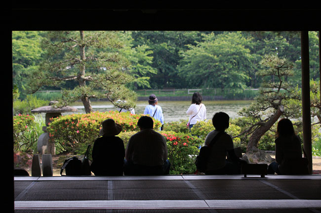 お屋敷の縁側に腰掛けて眺める 弁天池。