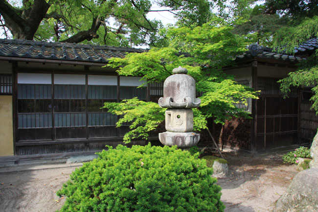 | 新緑の季節、庭園には青紅葉もたくさん見られ、秋の景色も楽しみです。 |