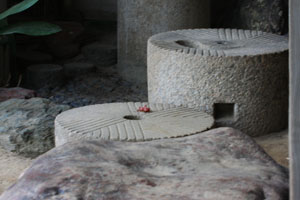 | バラの季節だけオープンする、米蔵の中のアクセサリーショップ。 |