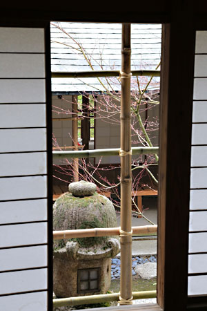 紫野大徳寺大綱和尚の水月の詩に因み名付けられた茶室からの眺め |