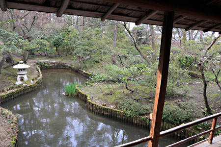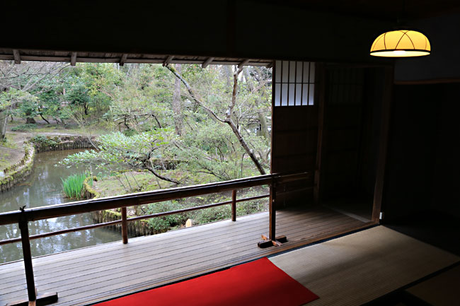 池にせり出した数寄屋造りの部屋。