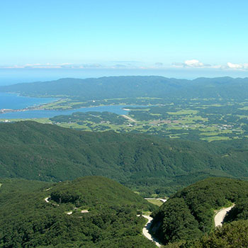 新潟市の沿岸からも見える佐渡島。約30キロ沖合にあり、何度も隆起を繰り返してできた島です。
