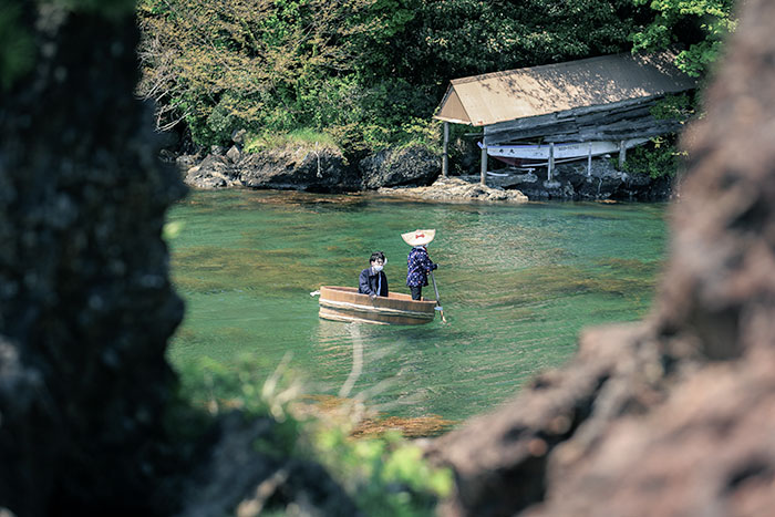 火山が何度も隆起してできた佐渡島には、小さな入り江が多く存在しています。