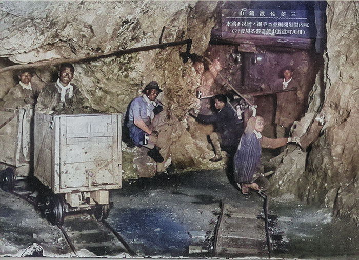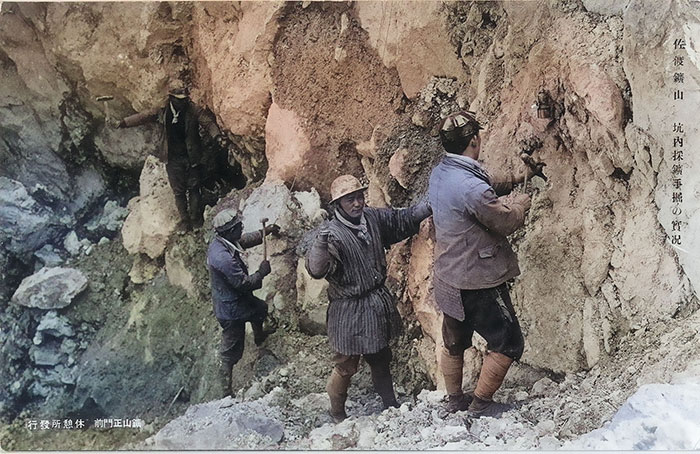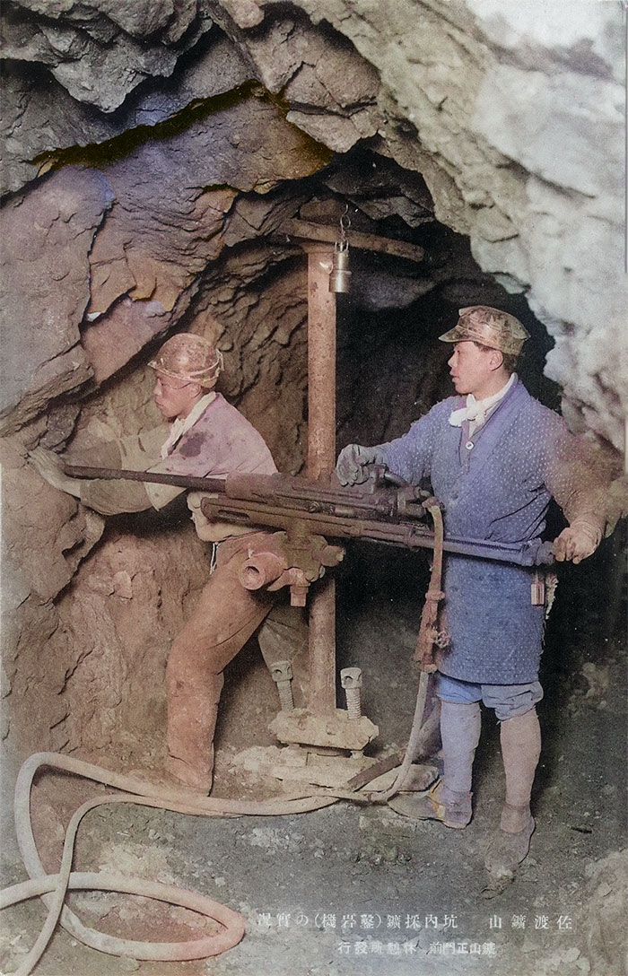 佐渡鑛山 坑内採鑛(盤岩機)の實況