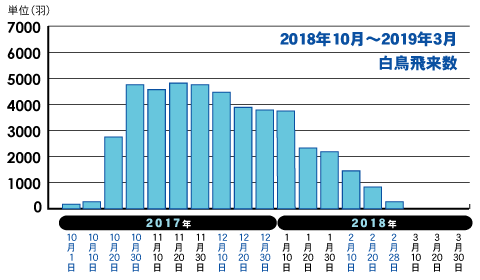 なお、白鳥の飛来数計測は、毎週金曜日早朝に実施しています。